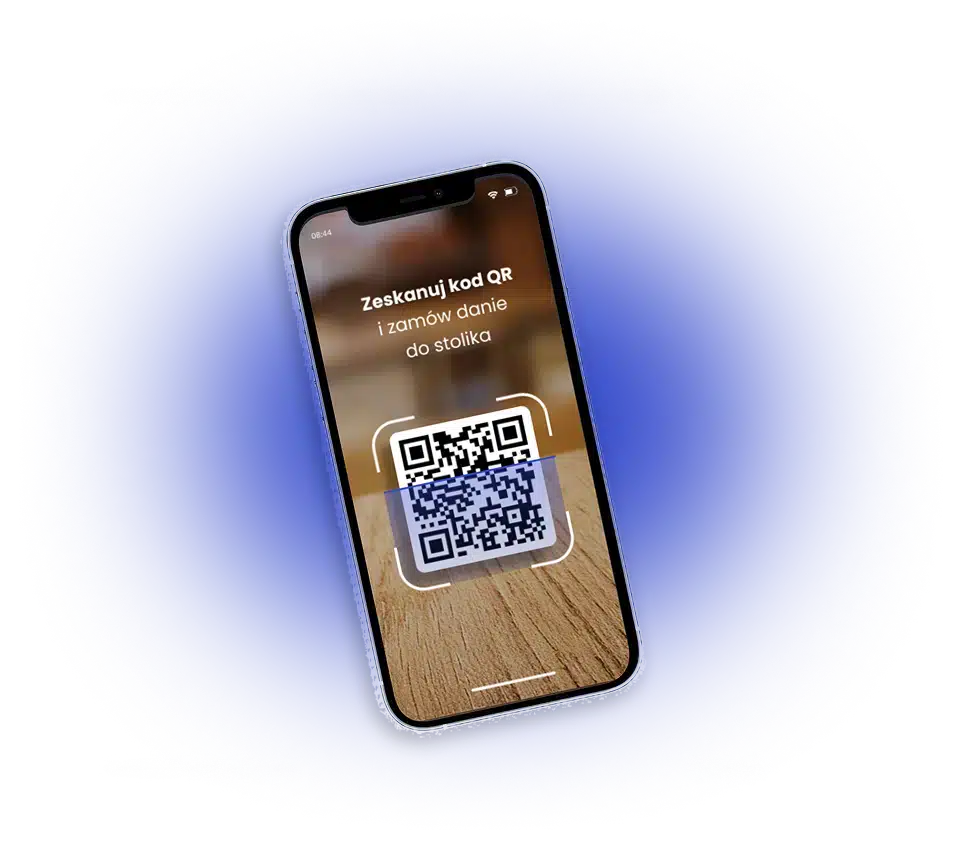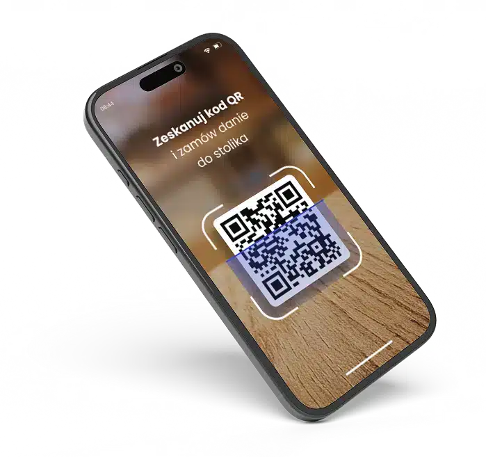 Gość skanuje kod i otwiera menu na telefonie.